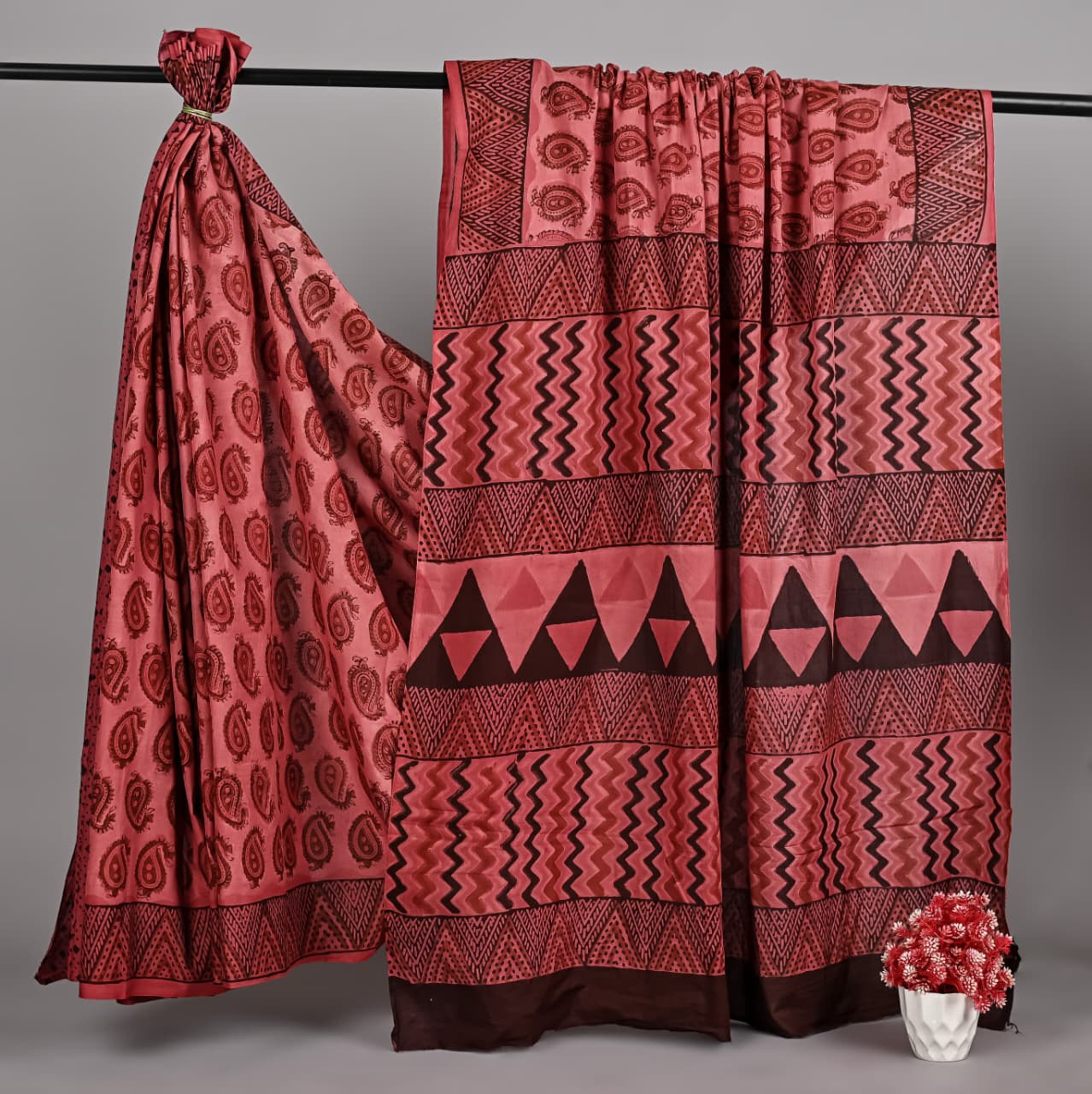- Technique: Hand Block Printing (Ajrakh & Jahota)