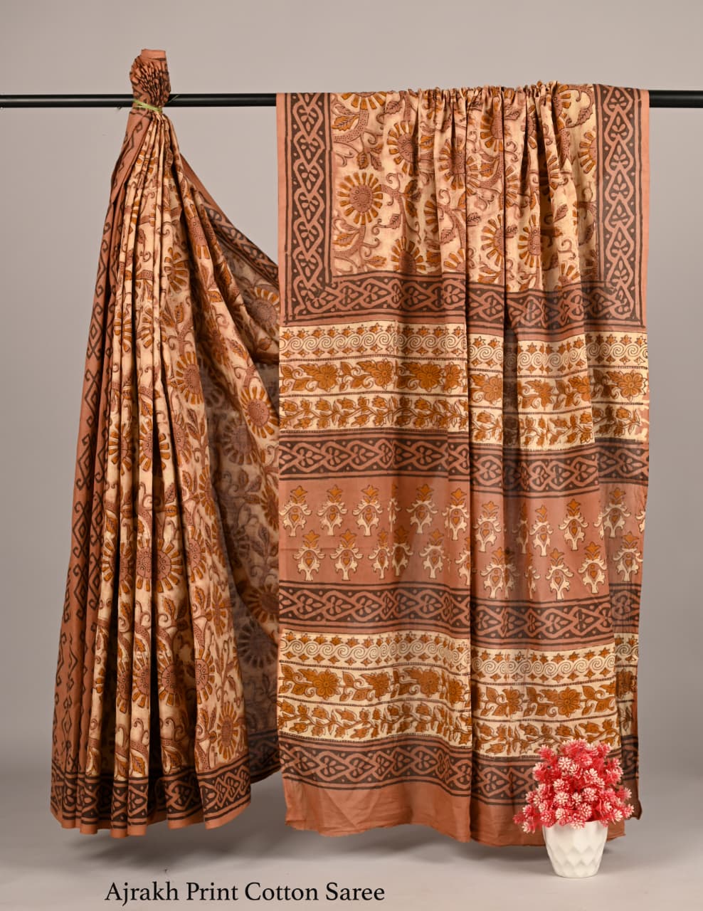 ๐ฟ Vanaspati Ajrakh & Jahota Printed Cotton Mulmul Sarees