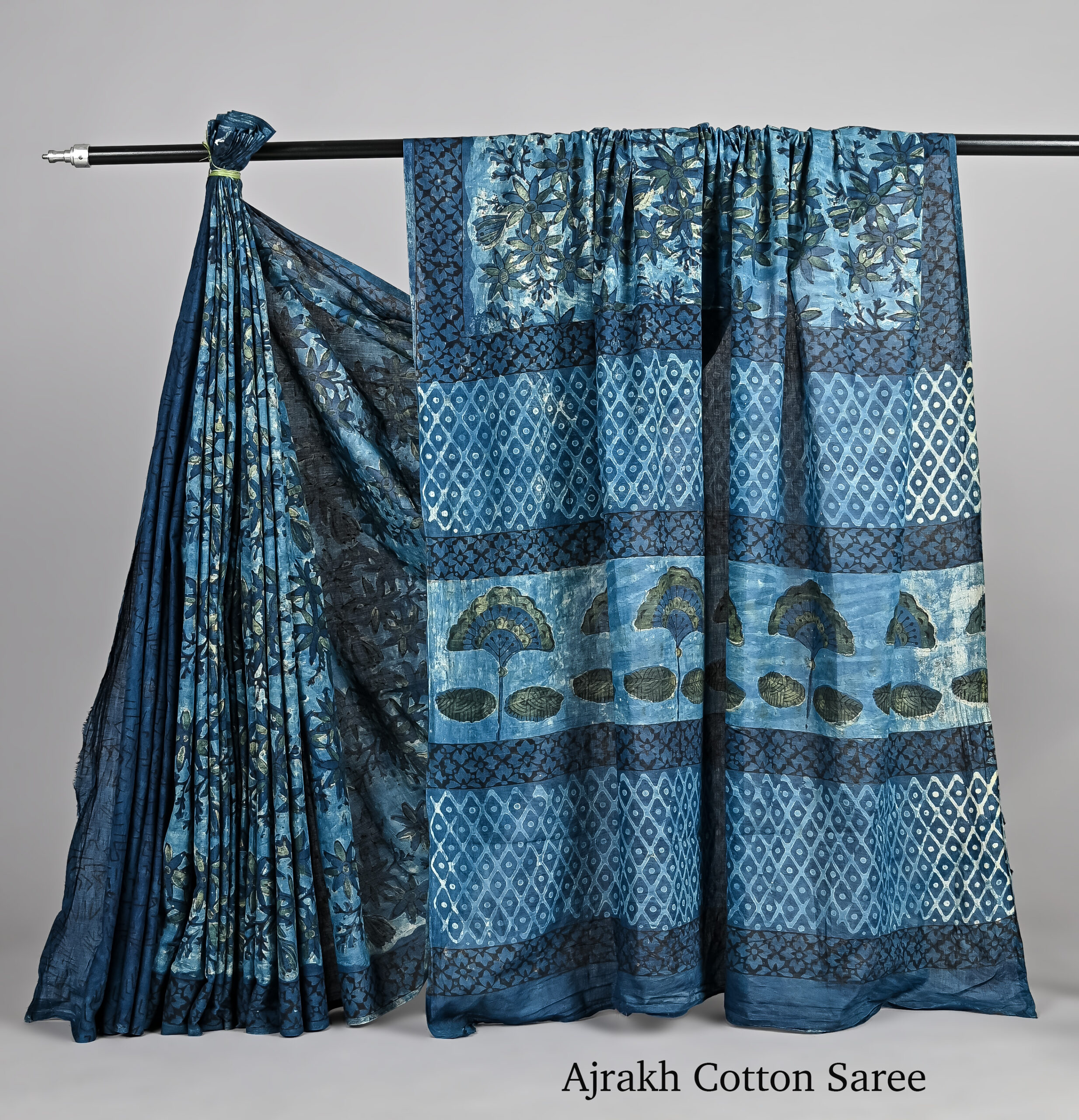 ๐ฟ Vanaspati Ajrakh & Jahota Printed Cotton Mulmul Sarees