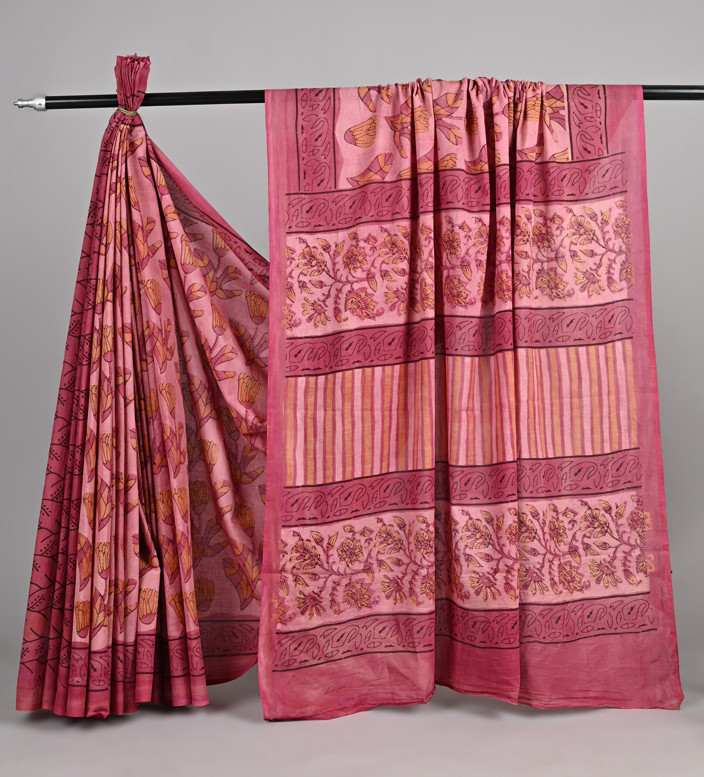 Shop premium Vanaspati Ajrakh Jahota Printed Cotton Mulmul Sarees online in India, crafted using natural dyes and traditional hand block printing techniques.
