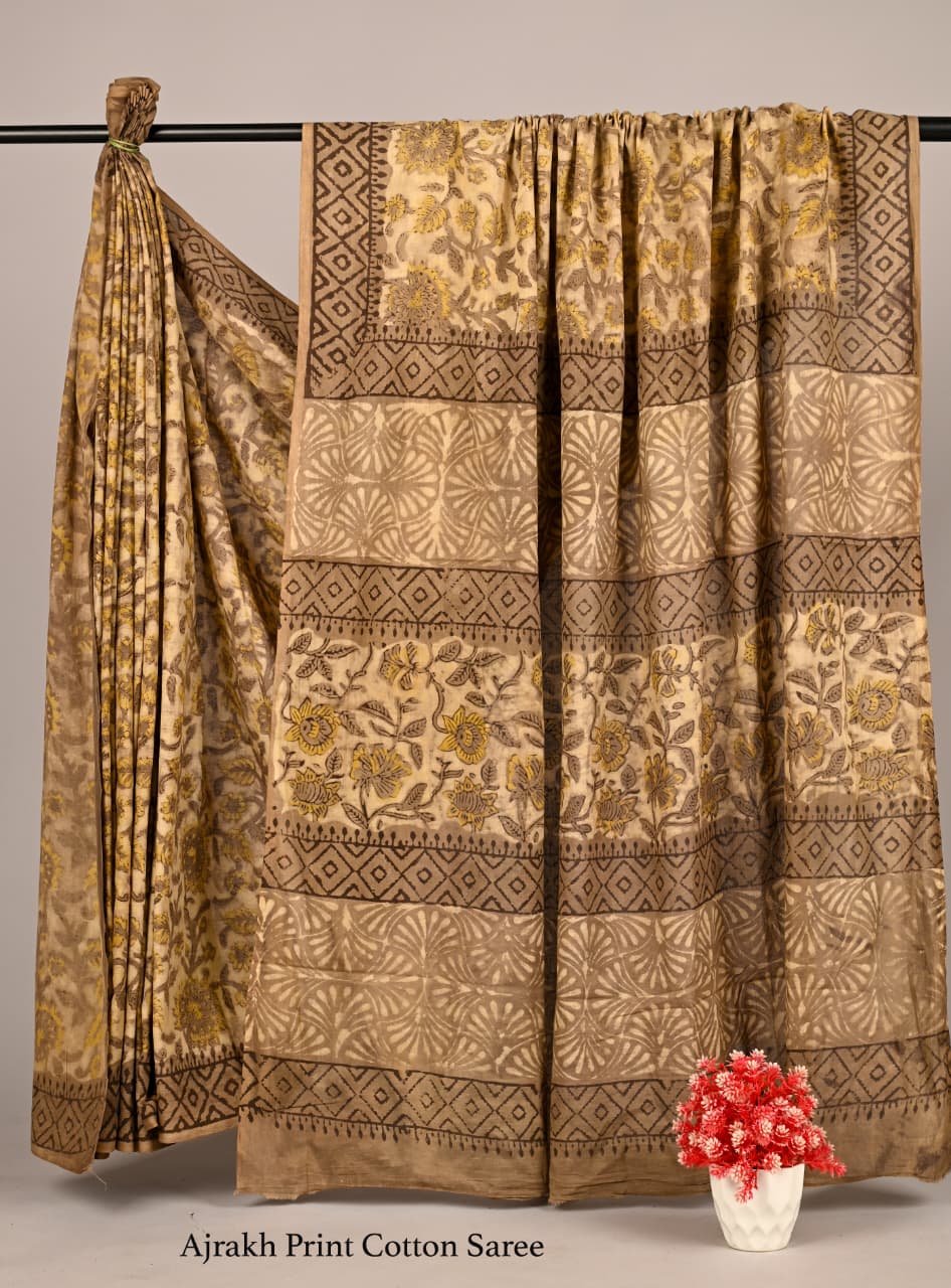 ๐ฟ Vanaspati Ajrakh & Jahota Printed Cotton Mulmul Sarees