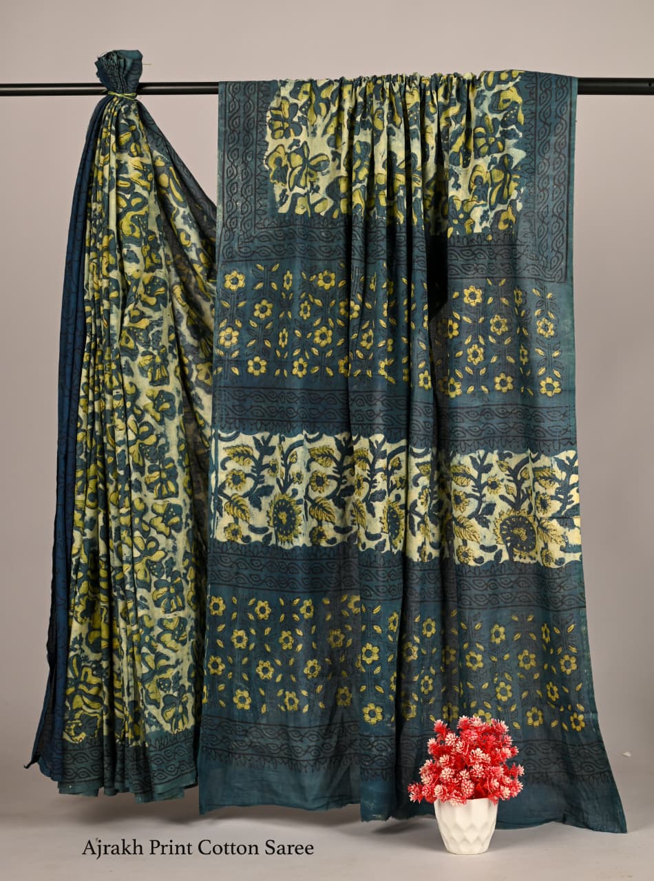๐ฟ Vanaspati Ajrakh & Jahota Printed Cotton Mulmul Sarees