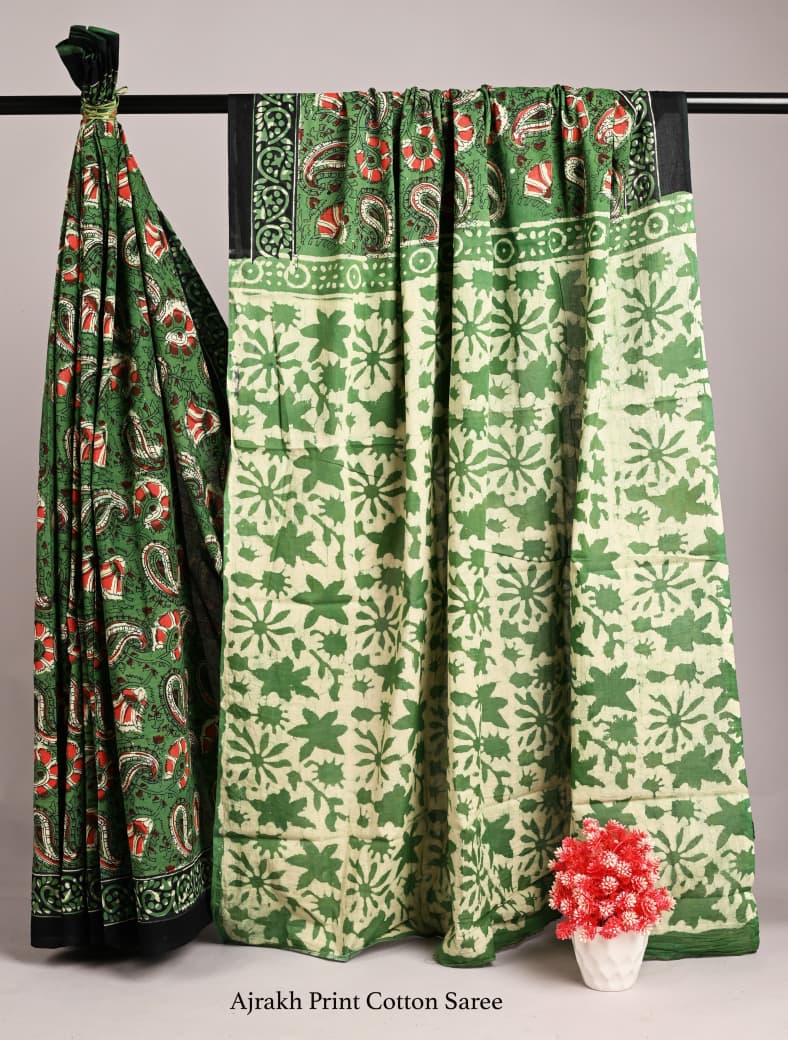 ๐ฟ Vanaspati Ajrakh & Jahota Printed Cotton Mulmul Sarees