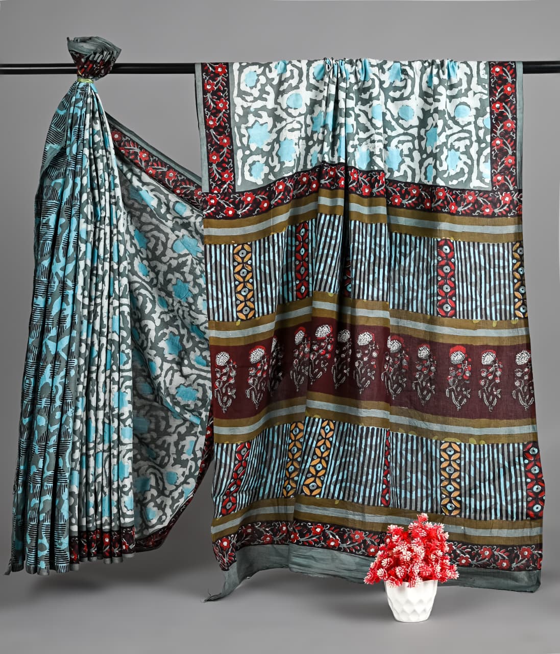 ๐ฟ Vanaspati Ajrakh & Jahota Printed Cotton Mulmul Sarees
