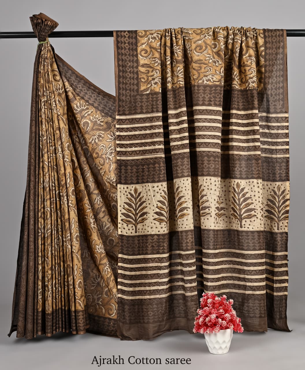 ๐ฟ Vanaspati Ajrakh & Jahota Printed Cotton Mulmul Sarees