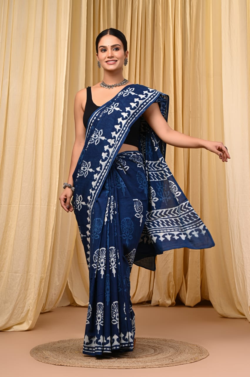 Each saree is handmade, not factory-produced. Slight variations in color, print, and texture are natural and reflect the authenticity of traditional Indian hand block printing.