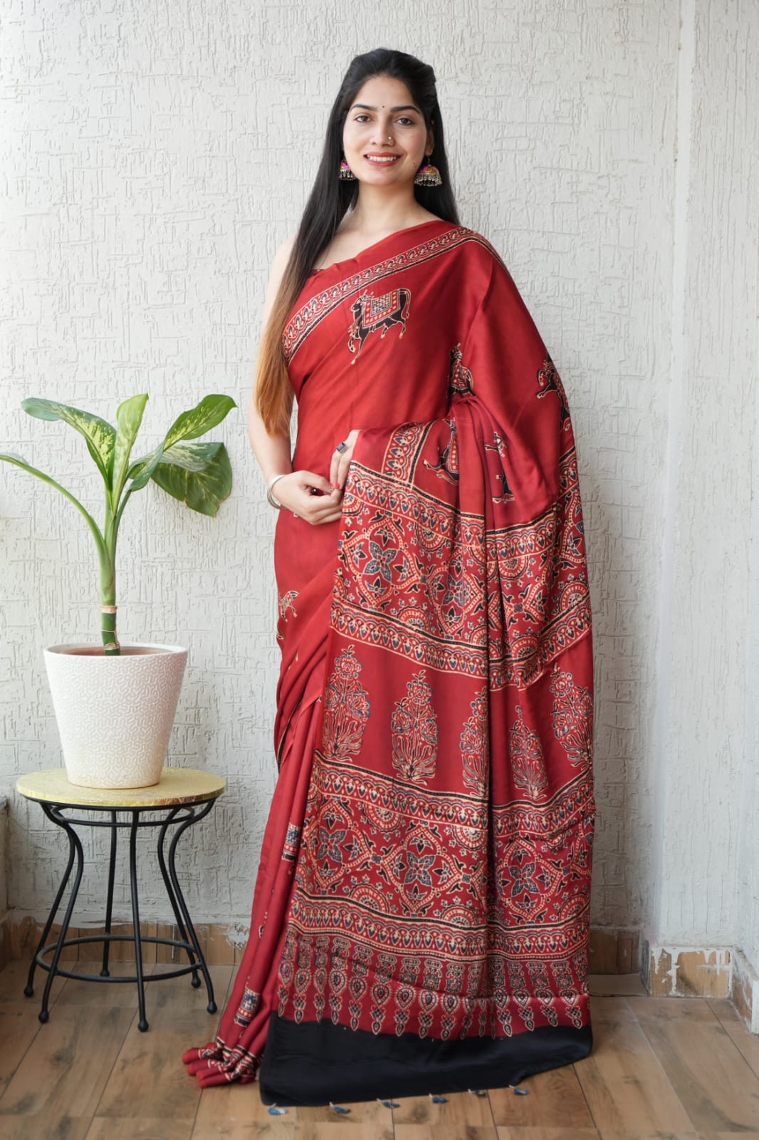 Mojo Ajrakh Modal Silk Saree