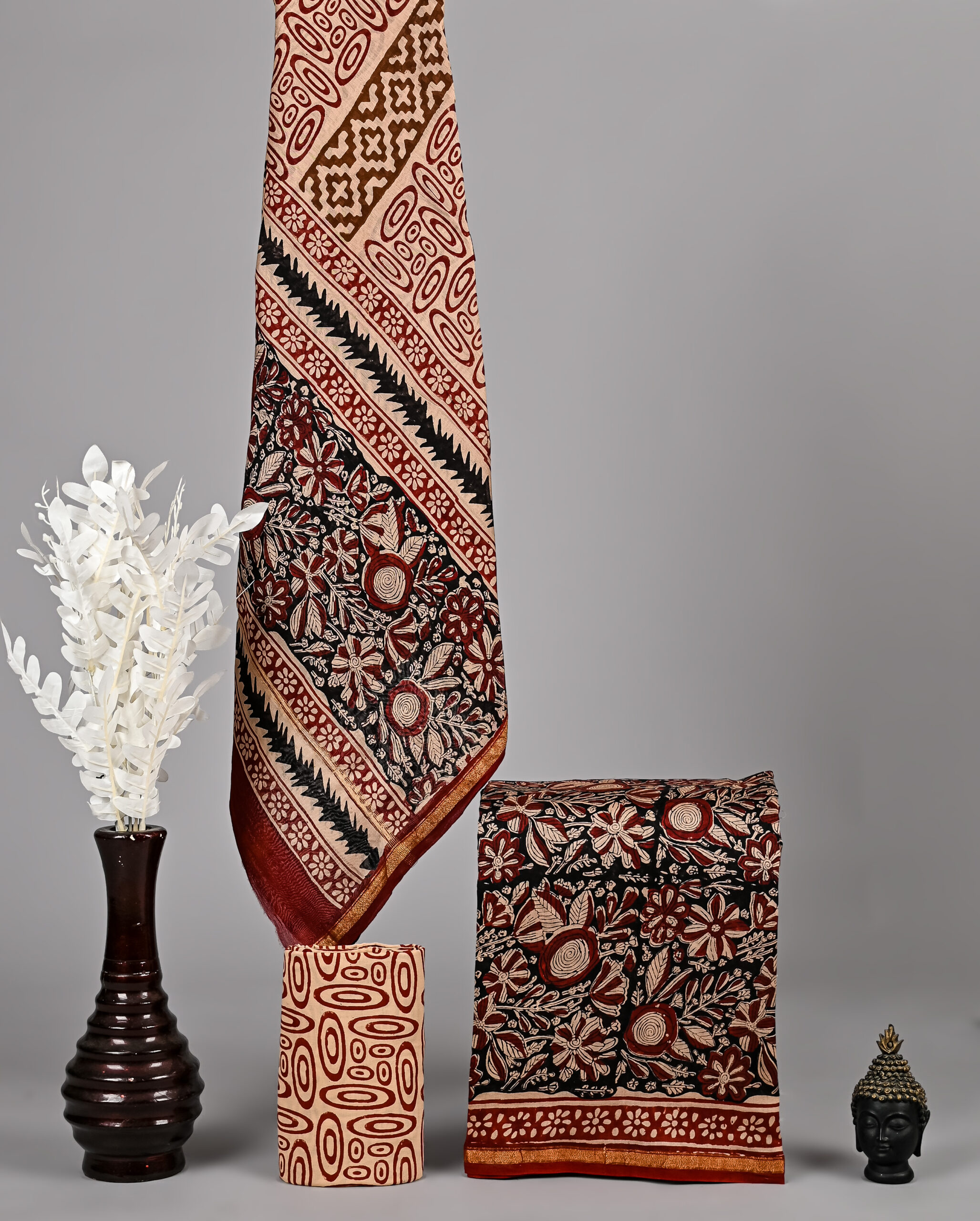 Crafted using traditional wooden blocks or brush painting