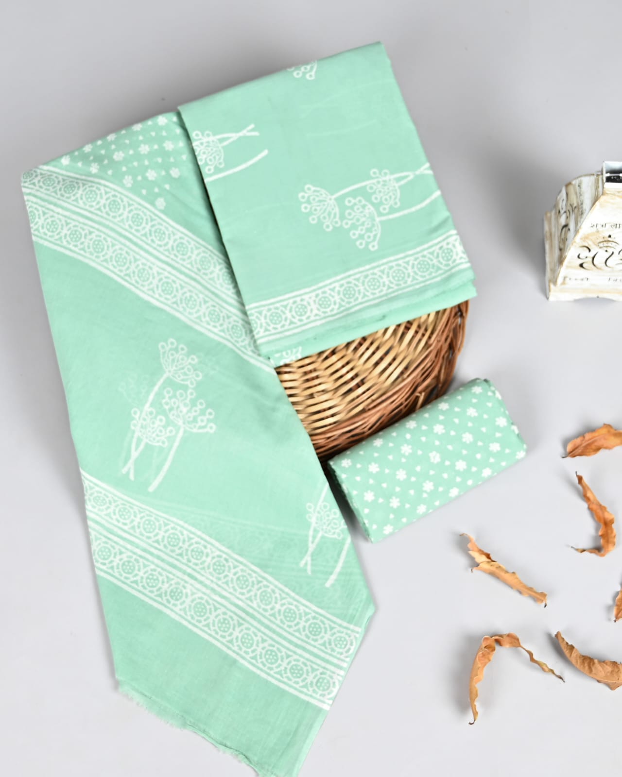 This three-piece suit set includes top, bottom, and dupatta fabric, allowing you to stitch it according to your preferred style and fit. Whether worn for daily wear, office wear, or small gatherings, this hand block printed cotton suit reflects timeless Indian craftsmanship and effortless elegance.