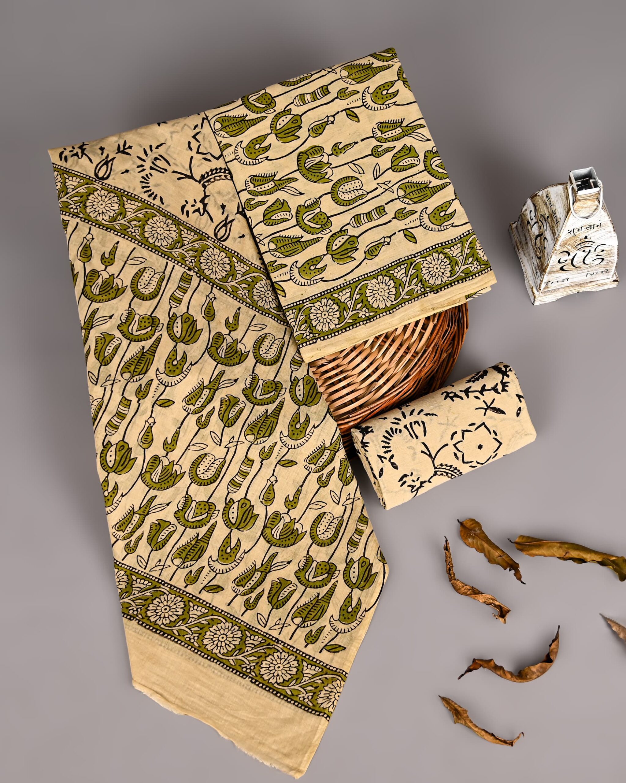 This three-piece suit set includes top, bottom, and dupatta fabric, allowing you to stitch it according to your preferred style and fit. Whether worn for daily wear, office wear, or small gatherings, this hand block printed cotton suit reflects timeless Indian craftsmanship and effortless elegance.