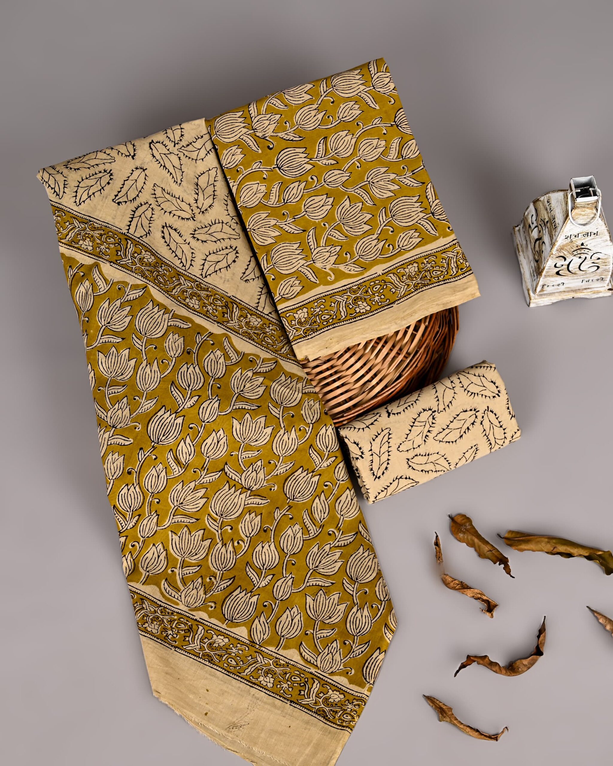 This three-piece suit set includes top, bottom, and dupatta fabric, allowing you to stitch it according to your preferred style and fit. Whether worn for daily wear, office wear, or small gatherings, this hand block printed cotton suit reflects timeless Indian craftsmanship and effortless elegance.