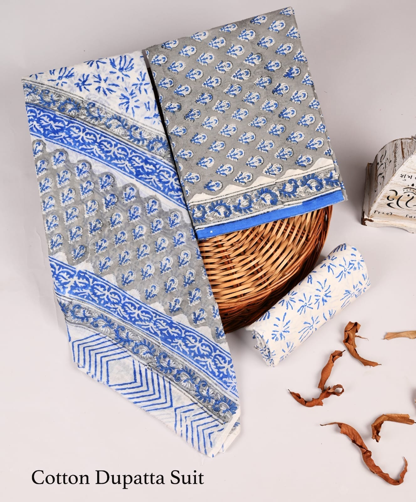 Hand Block Printed Cotton Suit with Cotton Dupatta