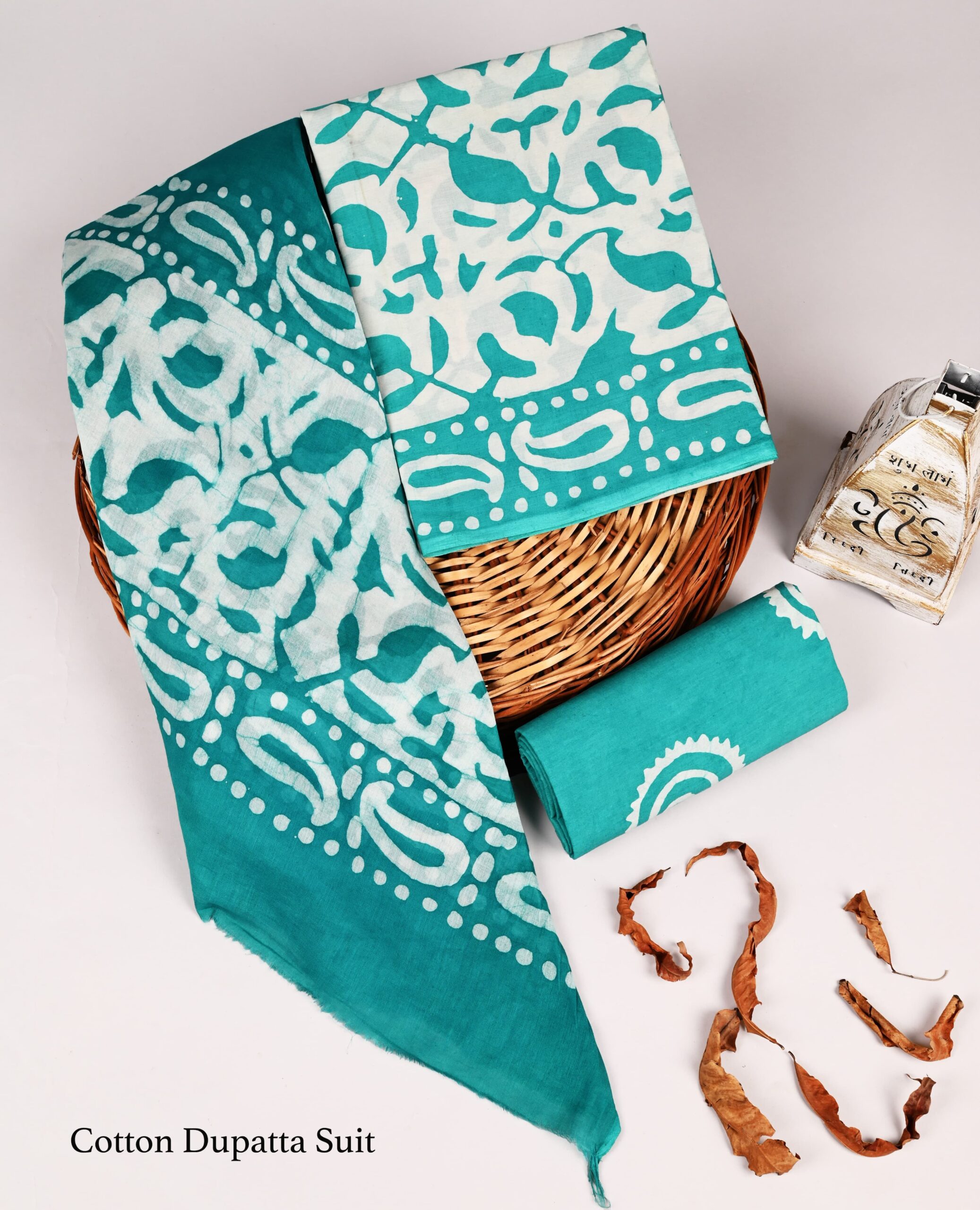 Hand Block Printed Cotton Suit with Cotton Dupatta