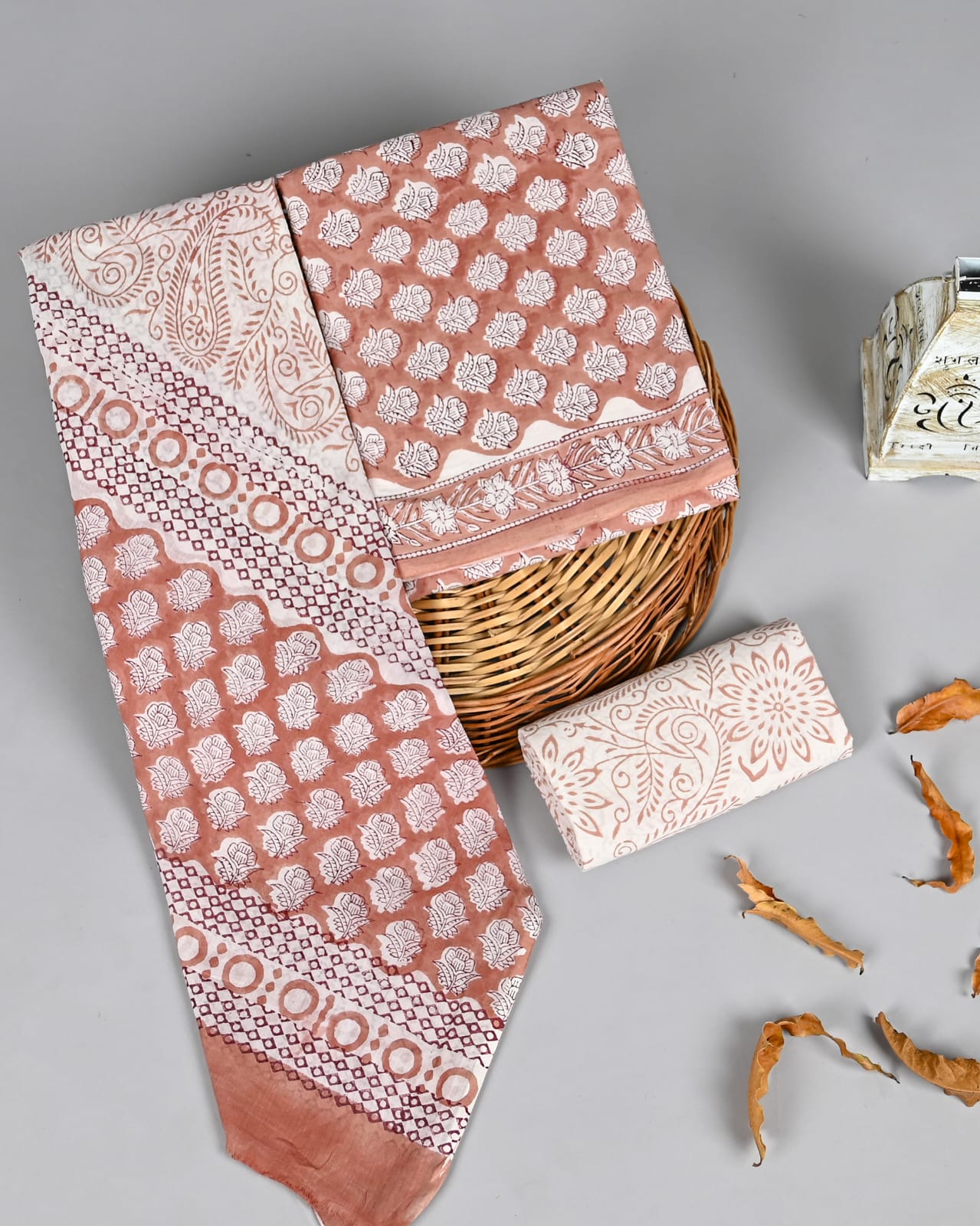 Hand Block Printed Cotton Suit with Cotton Dupatta