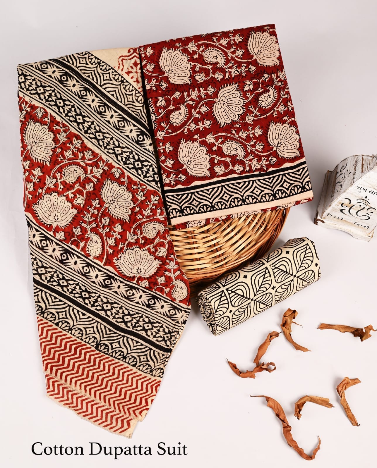 Hand Block Printed Cotton Suit with Cotton Dupatta