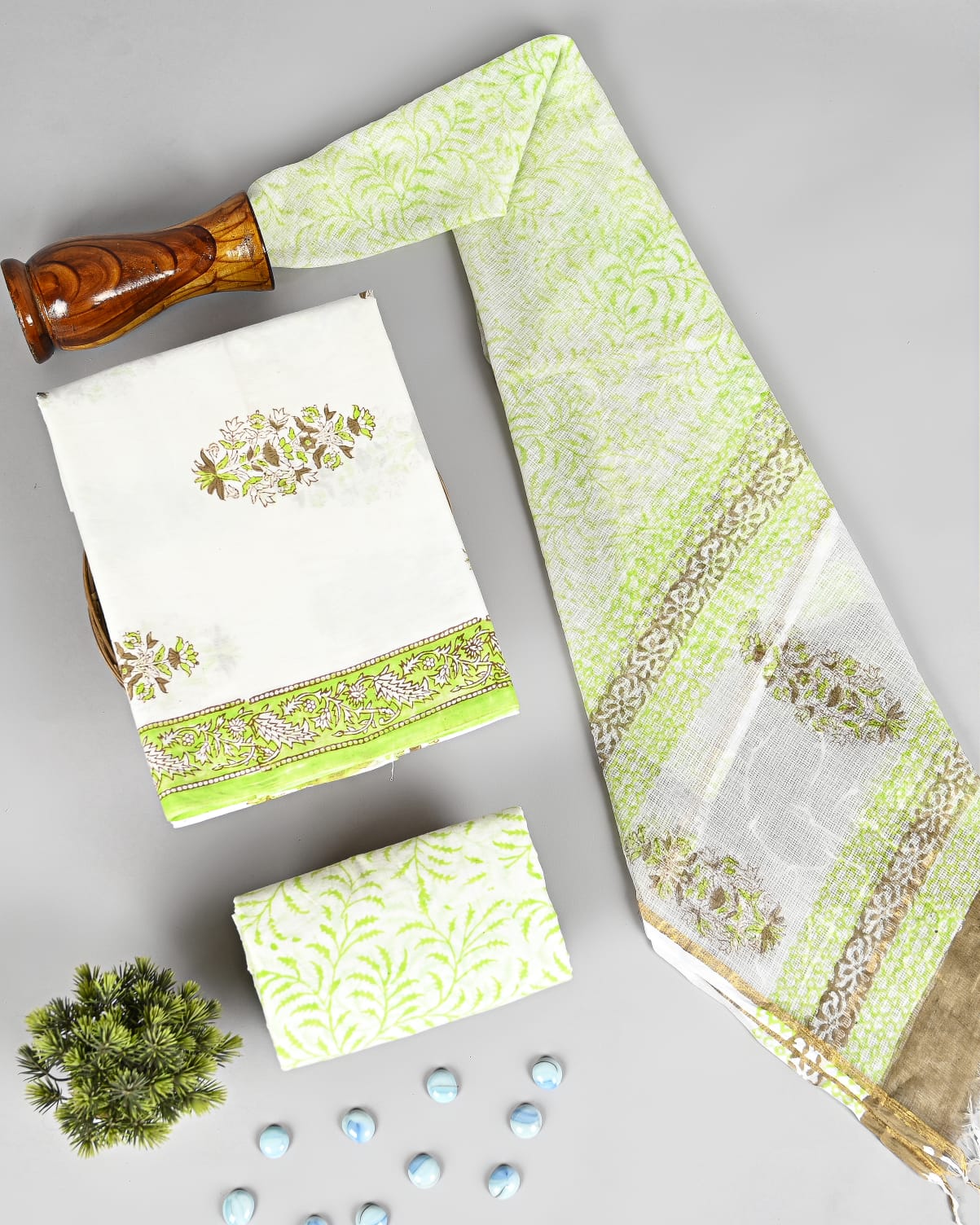 Hand Block Printed Cotton Suit Set with Kota Doria Dupatta