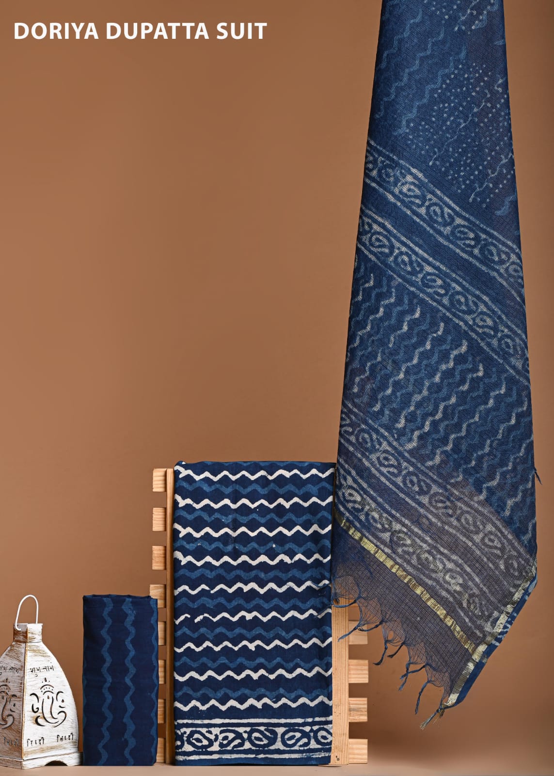 Hand Block Printed Cotton Suit Set with Kota Doria Dupatta