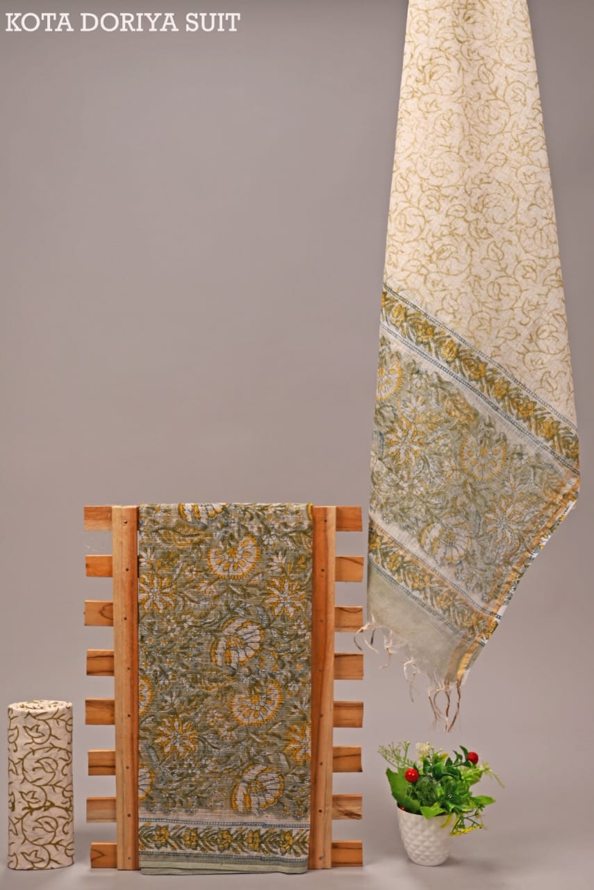 Hand Block Printed Kota Doria Suit with Dupatta
