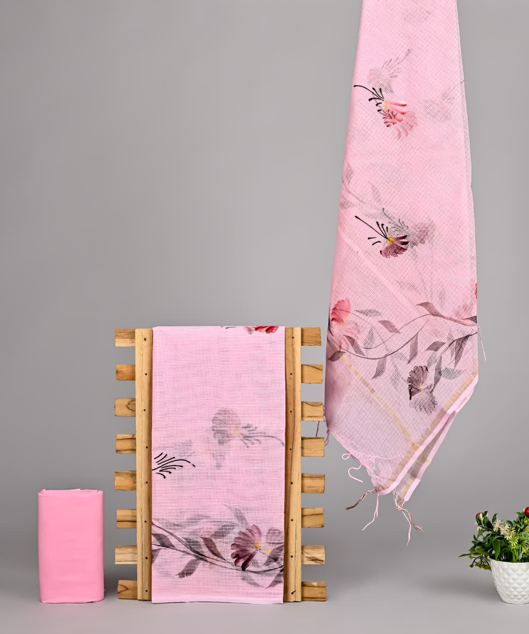 The Kota Doria fabric is known for its distinctive square weave pattern called “Khat”, which gives the fabric its breathable texture and soft drape. Traditionally woven in Rajasthan, Kota Doria is loved for its airy feel, making it an ideal choice for warm weather while maintaining a graceful and sophisticated appearance.