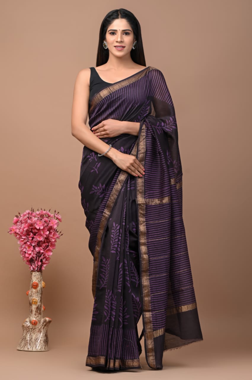 Sheen Gold black Maheshwari Silk Saree